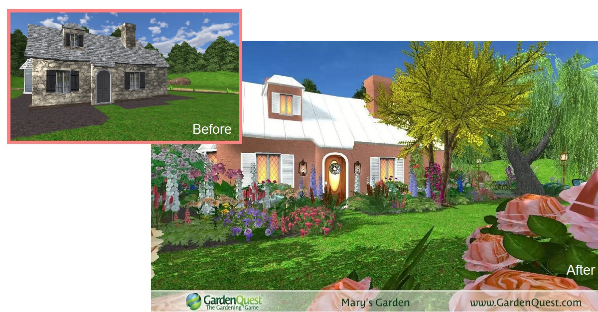 I love flowers and don't have a real garden. GardenQuest allows me to create a garden and build things as well. The game is a well designed with beautiful flowers and realistic items, beautiful skies and critters. This game means a lot to so many people.